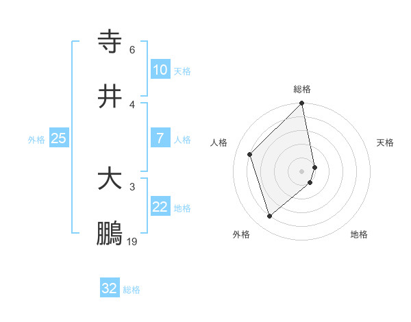 寺井 大鵬さんの総格は32画の5点!