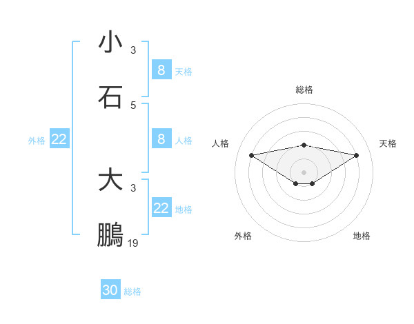小石 大鵬さんの地格は22画の1点!