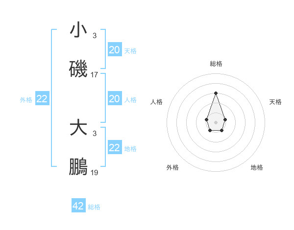 小磯 大鵬さんを姓名の画数から五運を鑑定