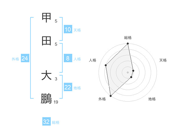 甲田 大鵬さんを姓名の画数から五運を鑑定