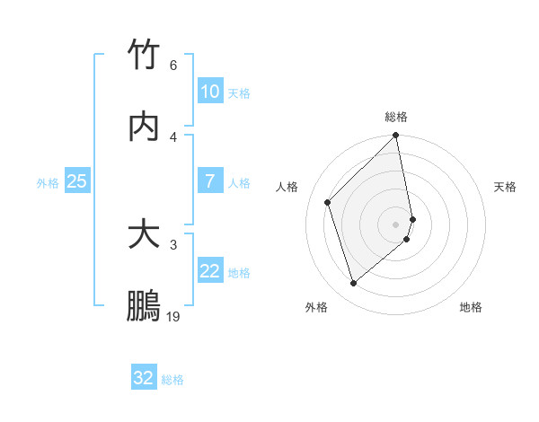 竹内 大鵬さんを姓名の画数から五運を鑑定
