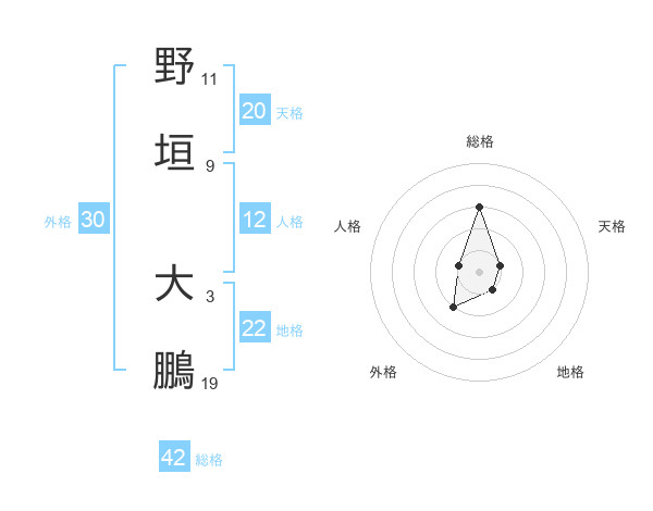 野垣 大鵬さんを姓名の画数から五運を鑑定