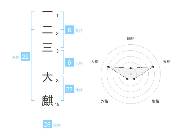 一二三 大麒さんの総格は28画の1点!