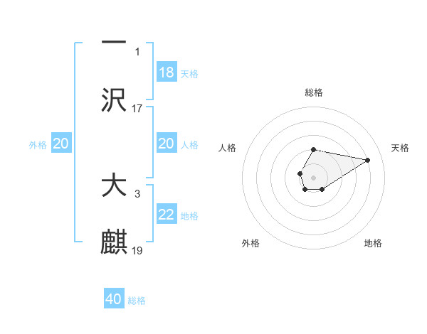 一沢 大麒さんを姓名の画数から五運を鑑定
