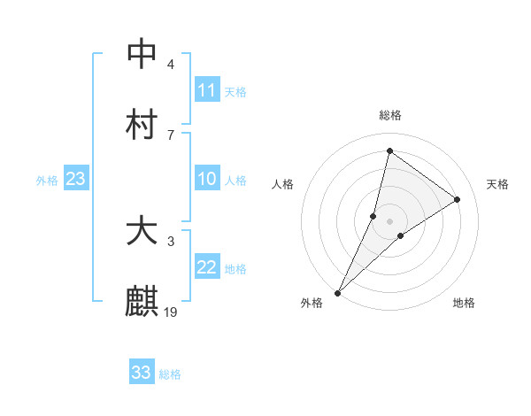 中村 大麒さんの天格は11画の4点!