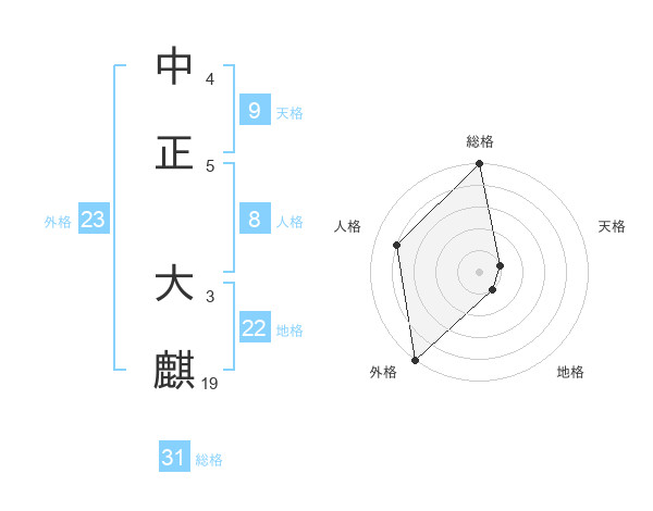 中正 大麒さんの総格は31画の5点!
