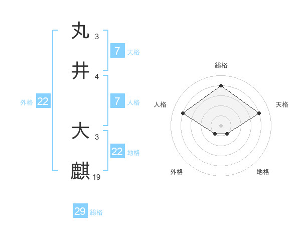丸井 大麒さんの総格は29画の4点!