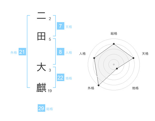 二田 大麒さんの外格は21画の5点!