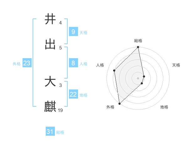 井出 大麒さんの総格は31画の5点!