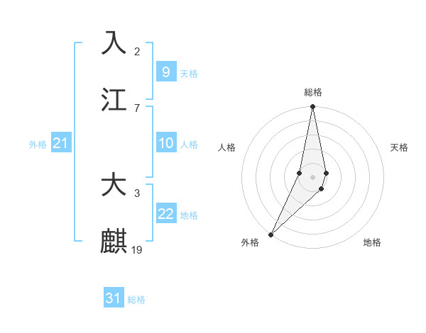 入江 大麒さんの総格は31画の5点!