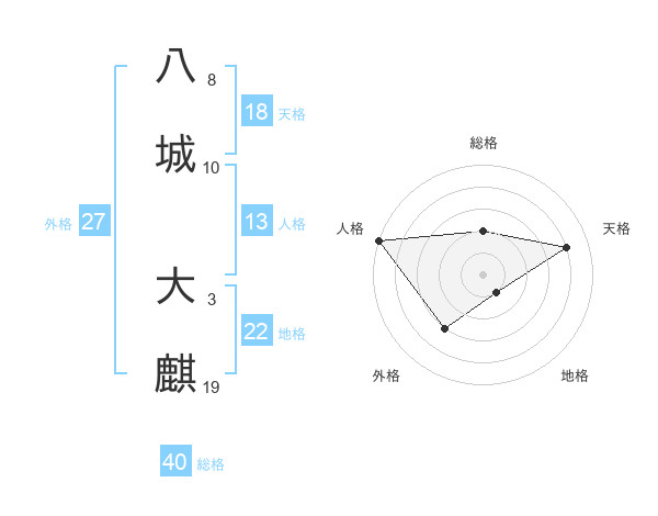 八城 大麒さんの天格は18画の4点!