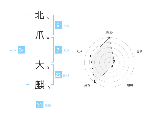 北爪 大麒さんの総格は31画の5点!