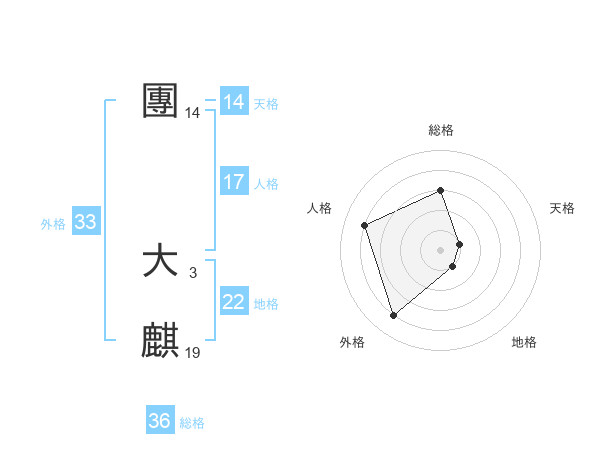 團 大麒さんの外格は33画の4点!