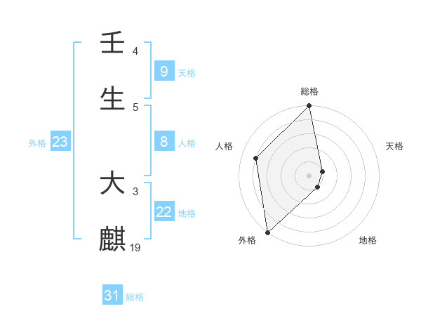 壬生 大麒さんを姓名の画数から五運を鑑定