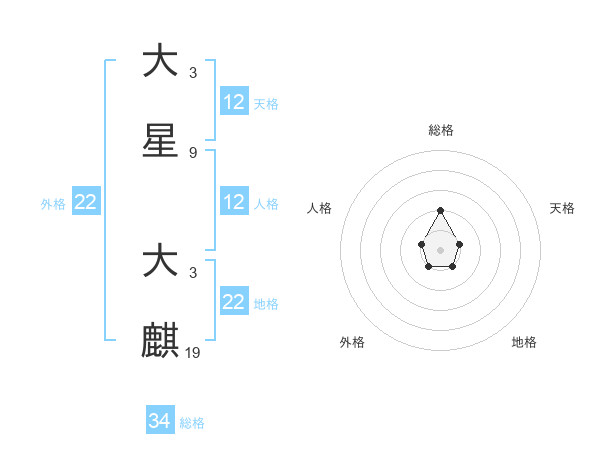 大星 大麒さんの総格は34画の2点!