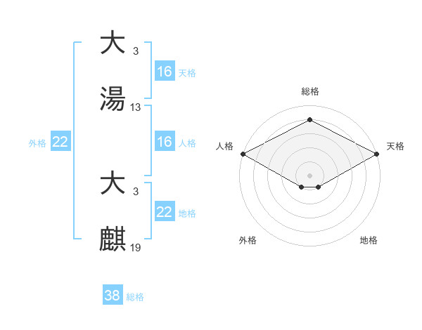 大湯 大麒さんの総格は38画の4点!