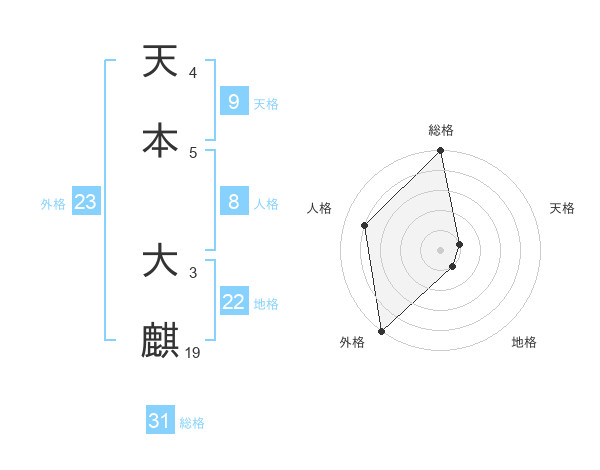 天本 大麒さんの外格は23画の5点!
