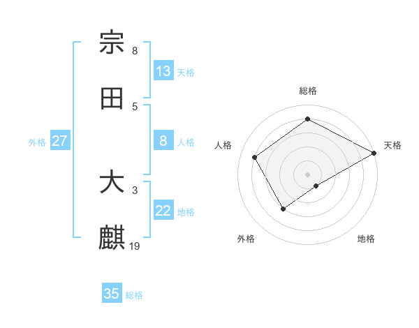 宗田 大麒さんを姓名の画数から五運を鑑定