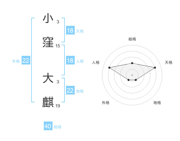 小窪 大麒さんを姓名の画数から五運を鑑定