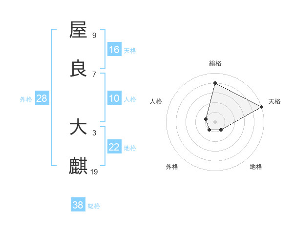 屋良 大麒さんを姓名の画数から五運を鑑定