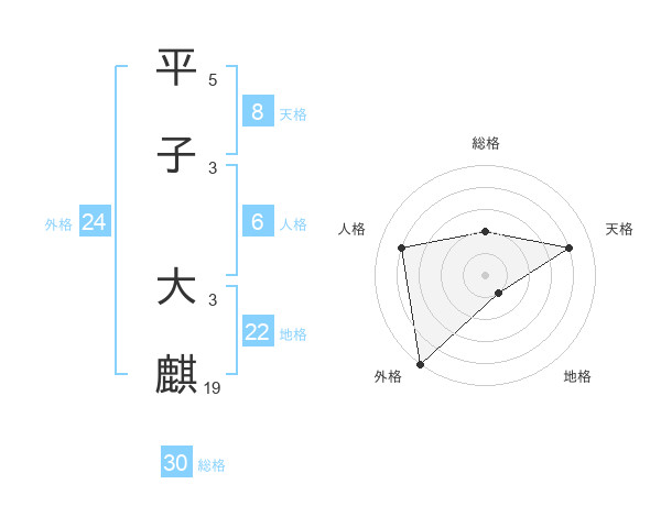 平子 大麒さんの総格は30画の2点!