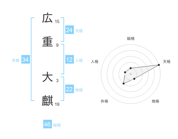 広重 大麒さんの総格は46画の1点!