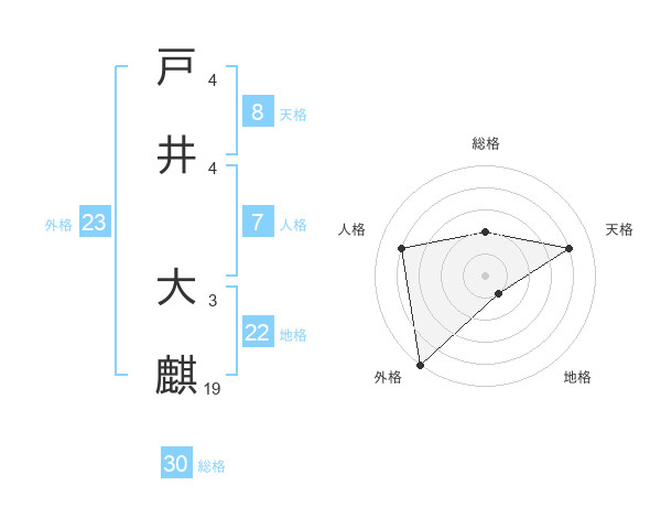 戸井 大麒さんを姓名の画数から五運を鑑定