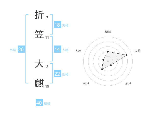 折笠 大麒さんを姓名の画数から五運を鑑定