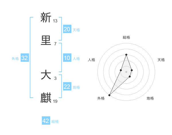 新里 大麒さんの外格は32画の5点!