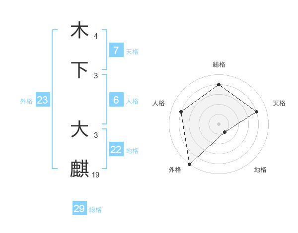 木下 大麒さんの総格は29画の4点!