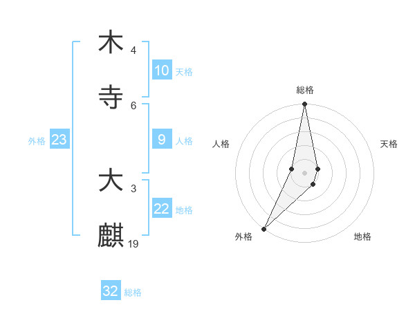 木寺 大麒さんを姓名の画数から五運を鑑定