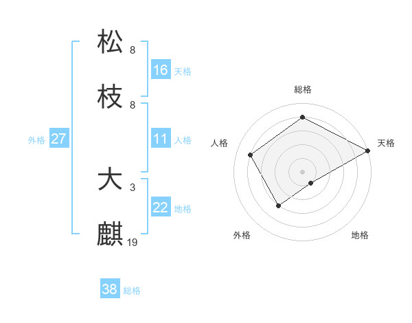 松枝 大麒さんの総格は38画の4点!
