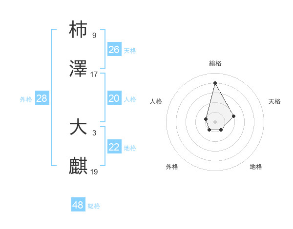 柿澤 大麒さんの総格は48画の4点!