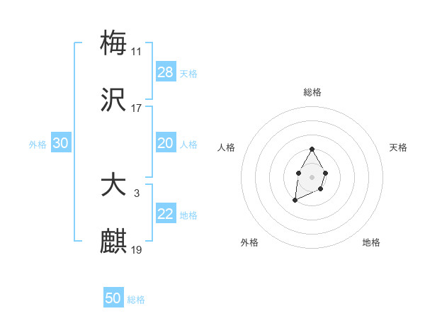 梅沢 大麒さんの総格は50画の2点!