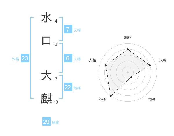 水口 大麒さんの総格は29画の4点!