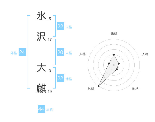 氷沢 大麒さんの総格は44画の2点!