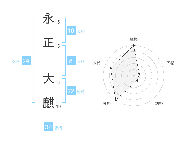 永正 大麒さんの総格は32画の5点!
