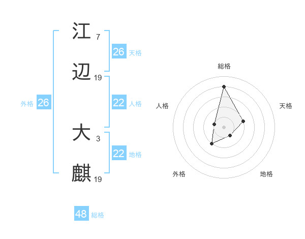 江辺 大麒さんを姓名の画数から五運を鑑定