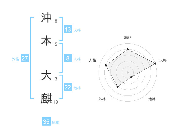 沖本 大麒さんを姓名の画数から五運を鑑定