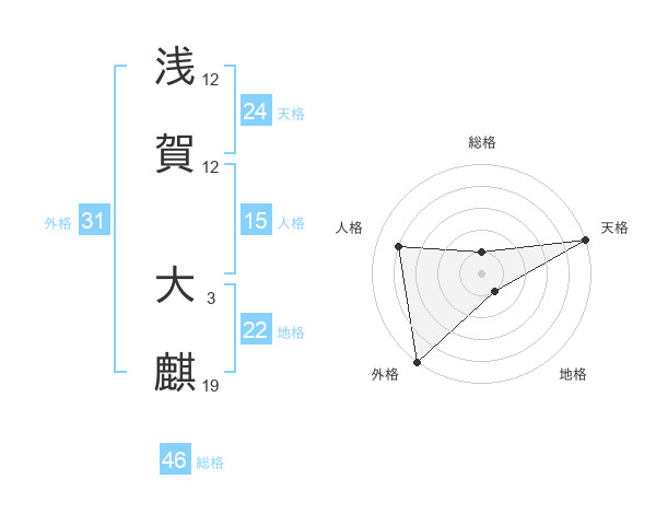 浅賀 大麒さんを姓名の画数から五運を鑑定