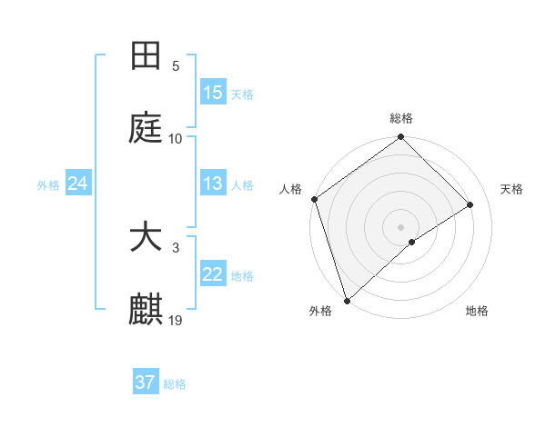 田庭 大麒さんの総格は37画の5点!