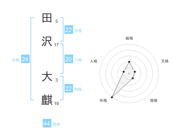 田沢 大麒さんを姓名の画数から五運を鑑定
