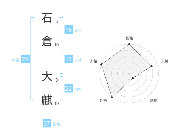 石倉 大麒さんを姓名の画数から五運を鑑定