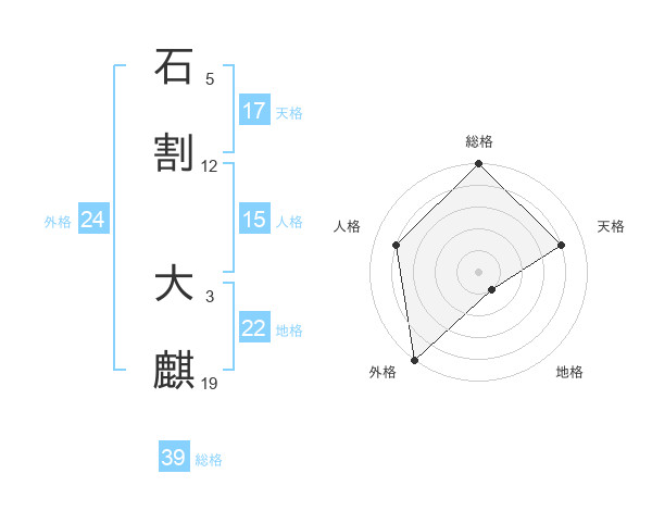 石割 大麒さんの総格は39画の5点!