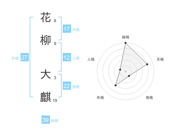 花柳 大麒さんを姓名の画数から五運を鑑定
