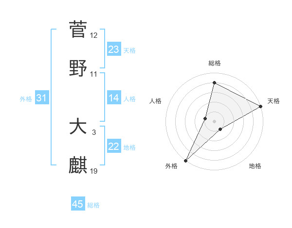 菅野 大麒さんを姓名の画数から五運を鑑定