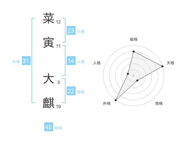 菜寅 大麒さんを姓名の画数から五運を鑑定