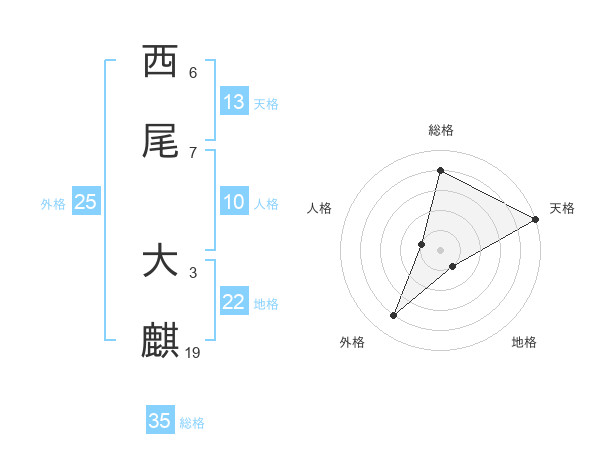 西尾 大麒さんの総格は35画の4点!