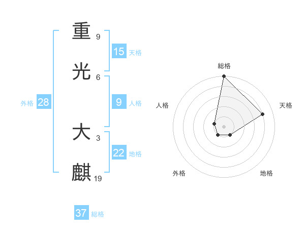 重光 大麒さんの総格は37画の5点!