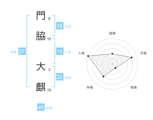 門脇 大麒さんを姓名の画数から五運を鑑定